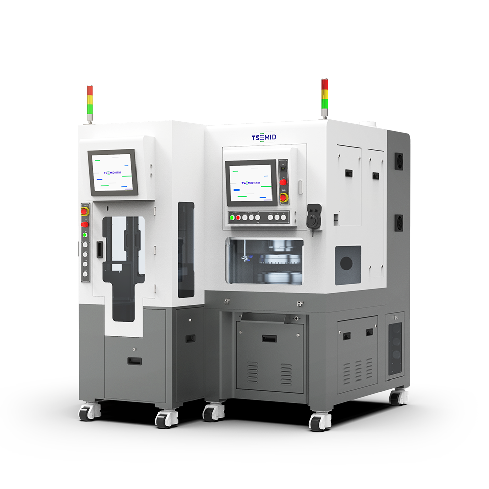 This fully-automatic single spindle grinder is suitable for grinding 4”-12” wafers. The machine is equipped to load and unload wafers, and it is integrated with automatic centering, cleaning, and drying functions. This machine is also equipped with an automatic thickness measurement and compensation system. It can realize automatic grinding processing of wafers from cassette to cassette, and complete dry-in and dry-out processing.