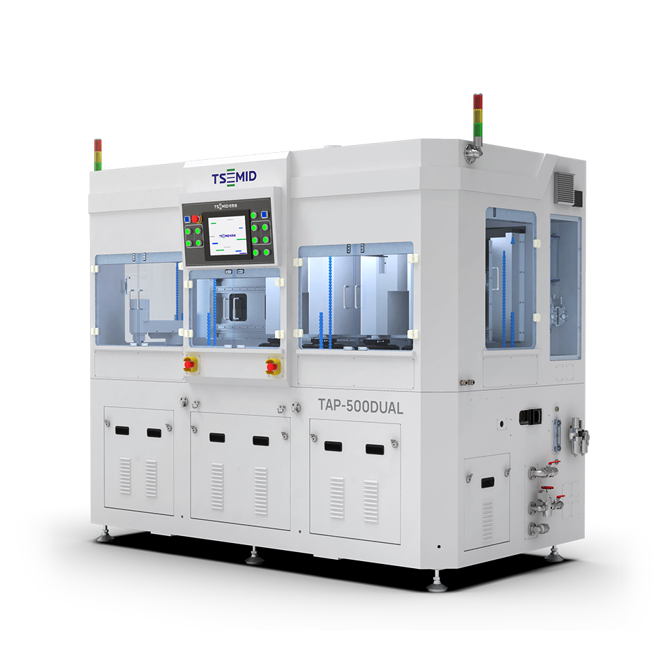 該系列拋光機是雙拋光盤的高精密單面拋光設備,可實現四軸同時加工,設備可依據不同晶圓配置相應拋光頭,真空吸附固定晶圓,氣囊加壓,拋光壓頭自轉并兼具擺動,適用于各種半導體材料的拋光。